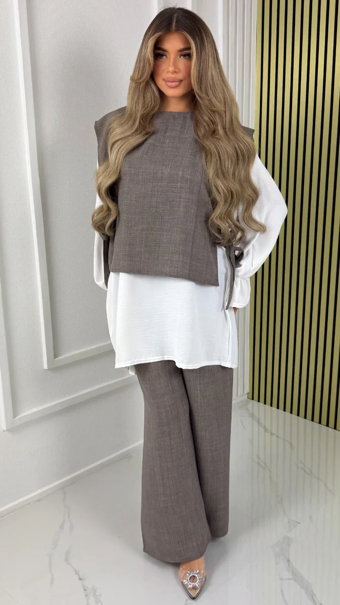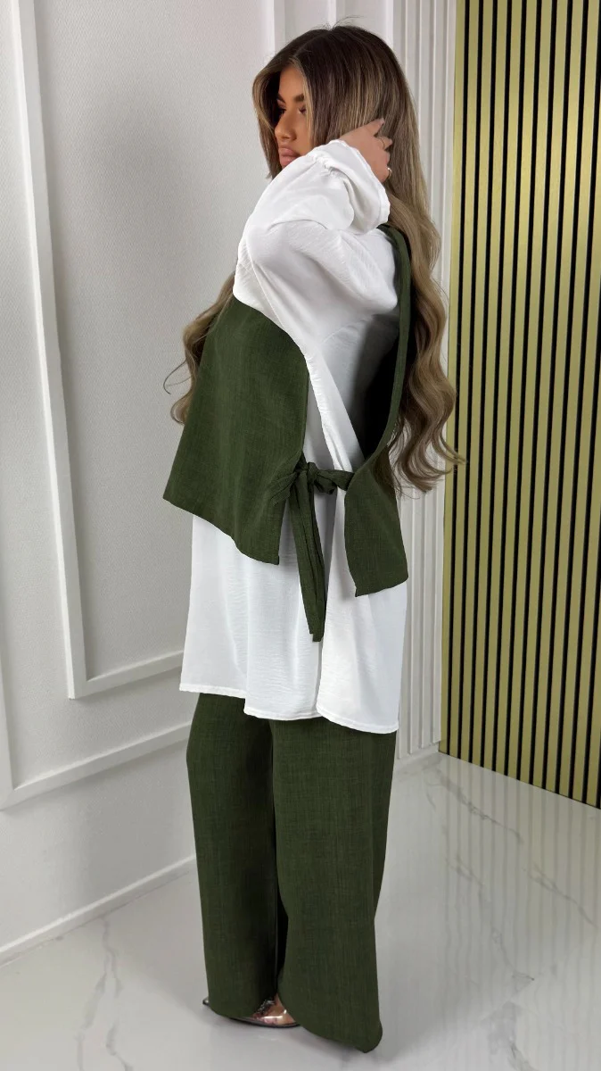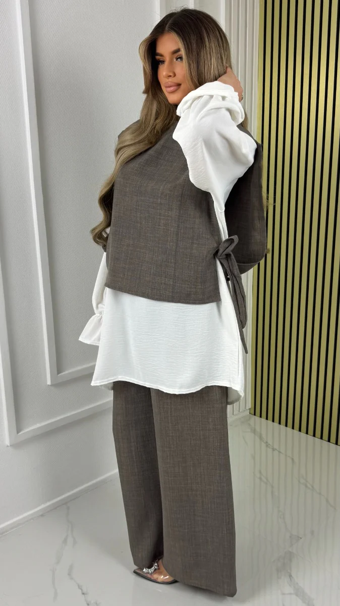 Prachtige set bestaat uit de top, lange mouw t-shirt en broek. allemaal los van elkaar.