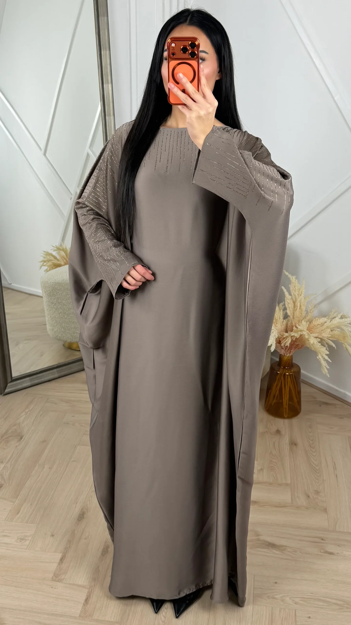 • Elegante abaya jurk met ruime cape mouwen