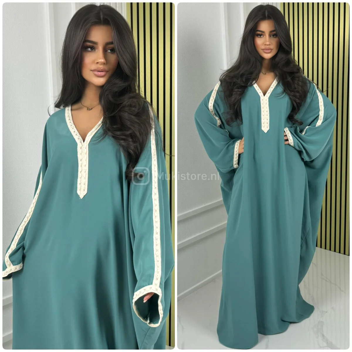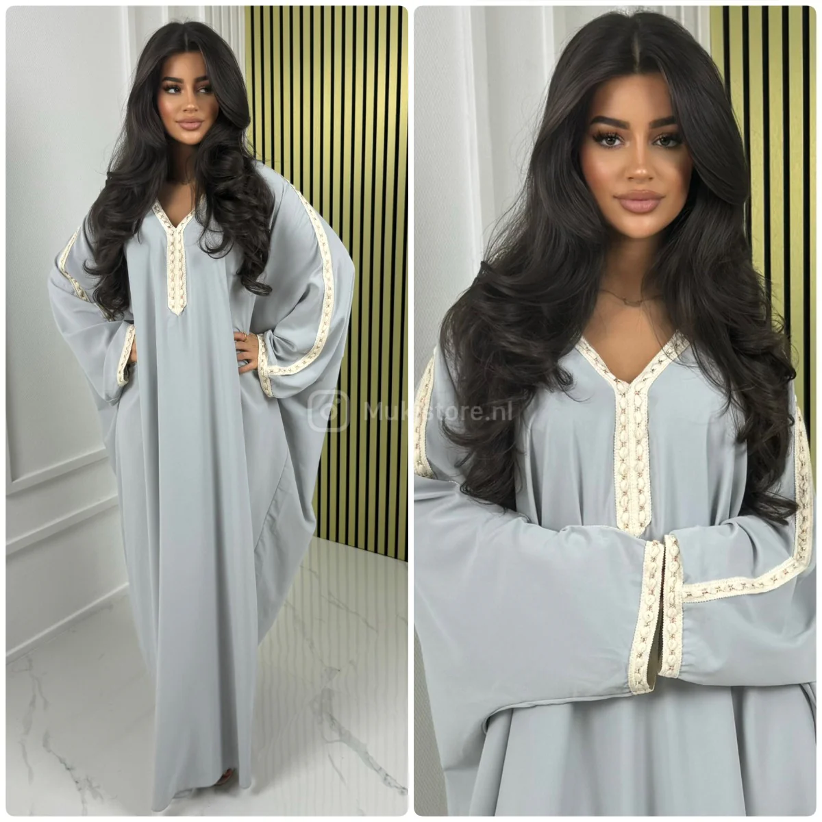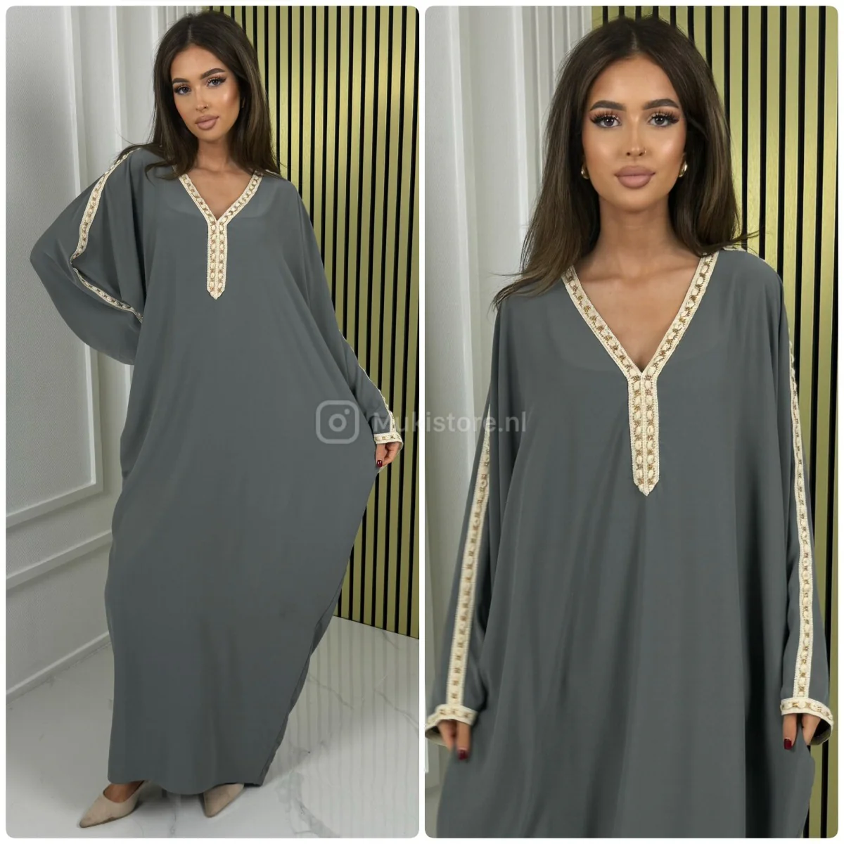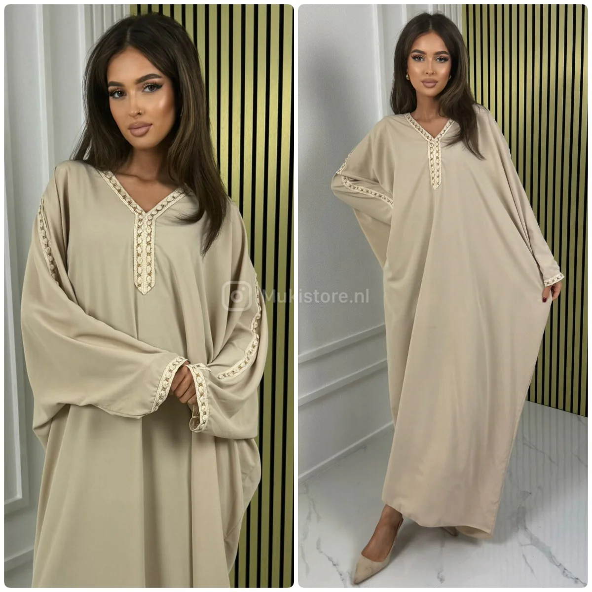 Fotomodel Imane (Bruin haar) is 1.70m lang en draagt normaliter maat XS/S.
