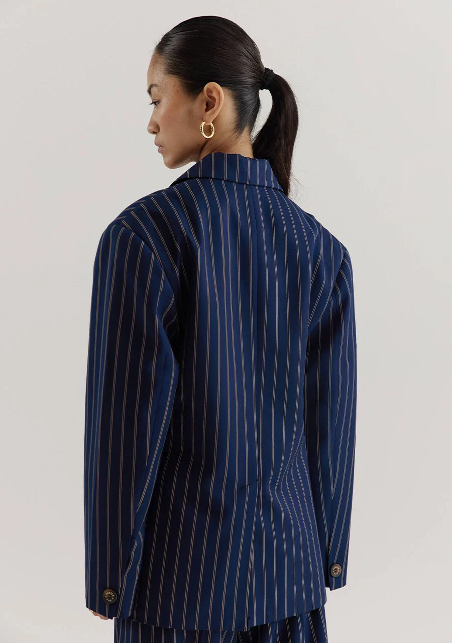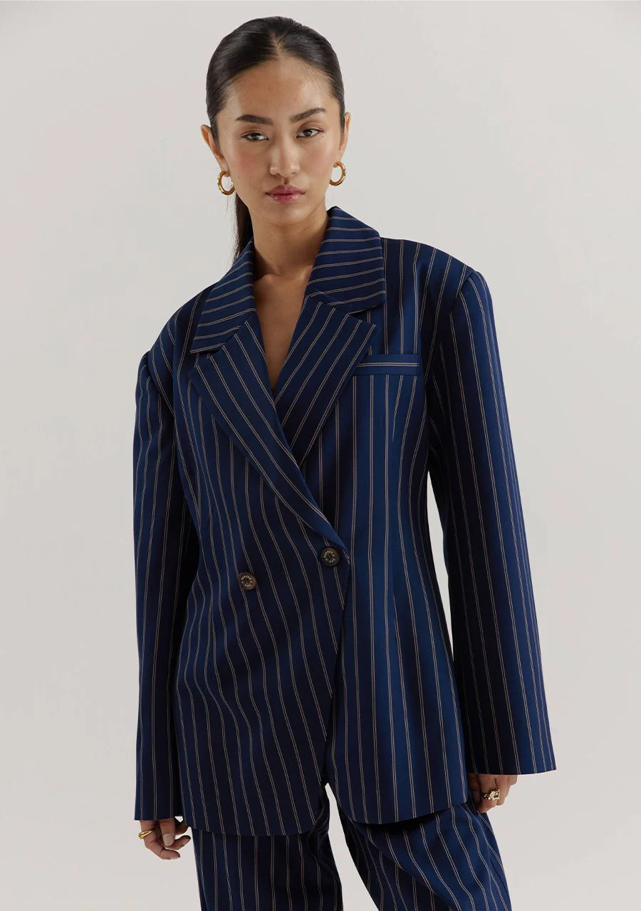 🩷 De streep zorgt voor een zakelijke feel, terwijl de relaxte fit en zachte stof een comfortabele twist toevoegen