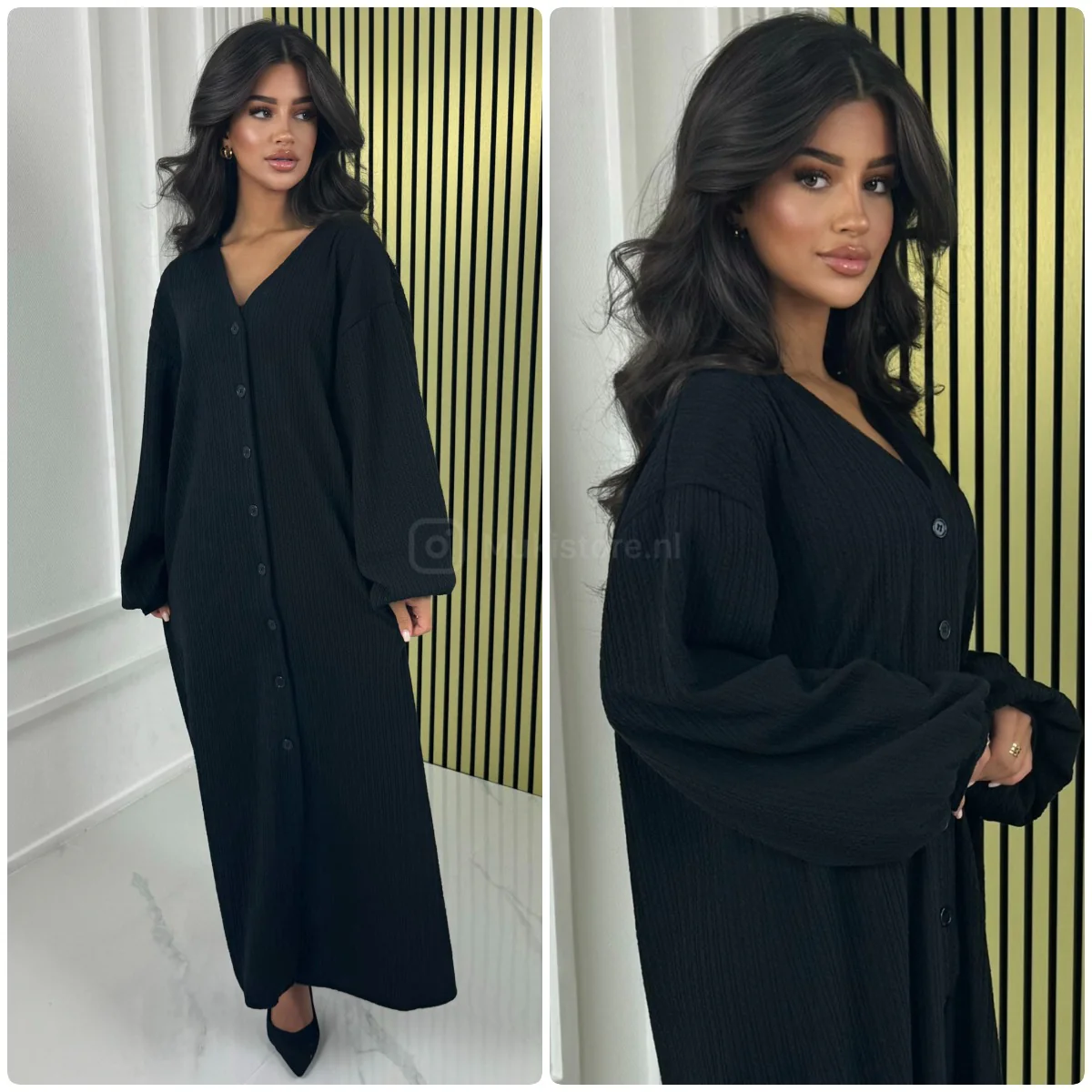 Fotomodel Dina (Zwart haar) is 1.64m lang en draagt normaliter maat XS/S.