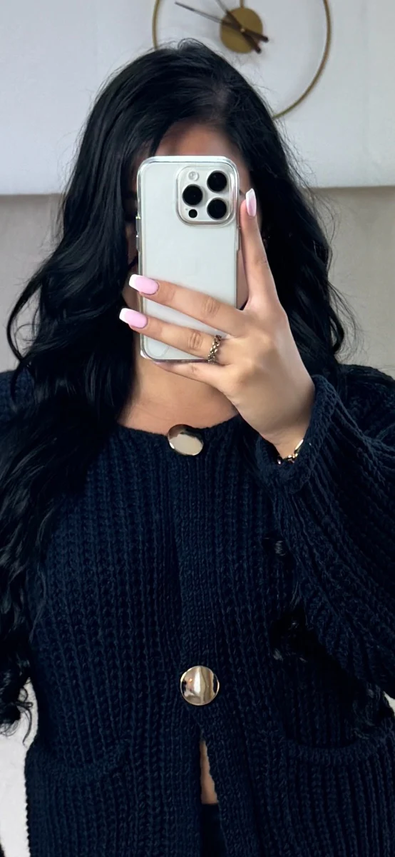Fotomodel Dina (Zwart haar) is 1.64m lang en draagt normaliter maat XS/S.