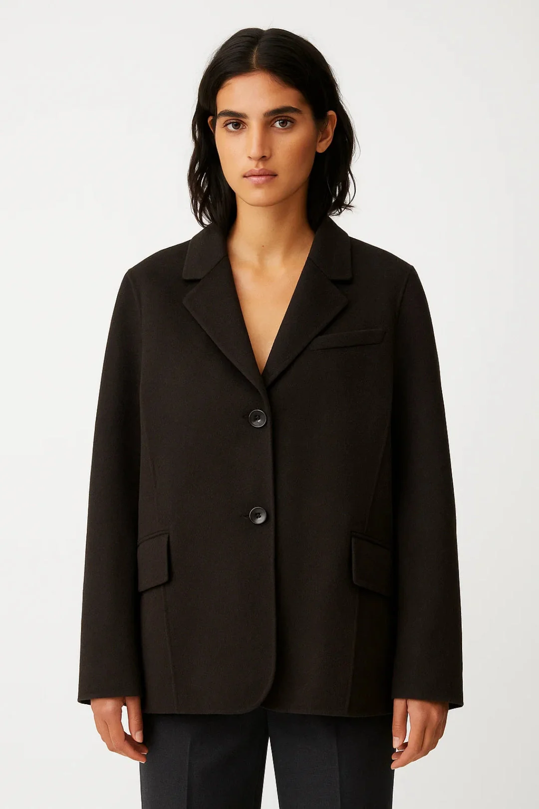 • Kenmerken: Klassieke revers, strakke belijning, tijdloos silhouet
