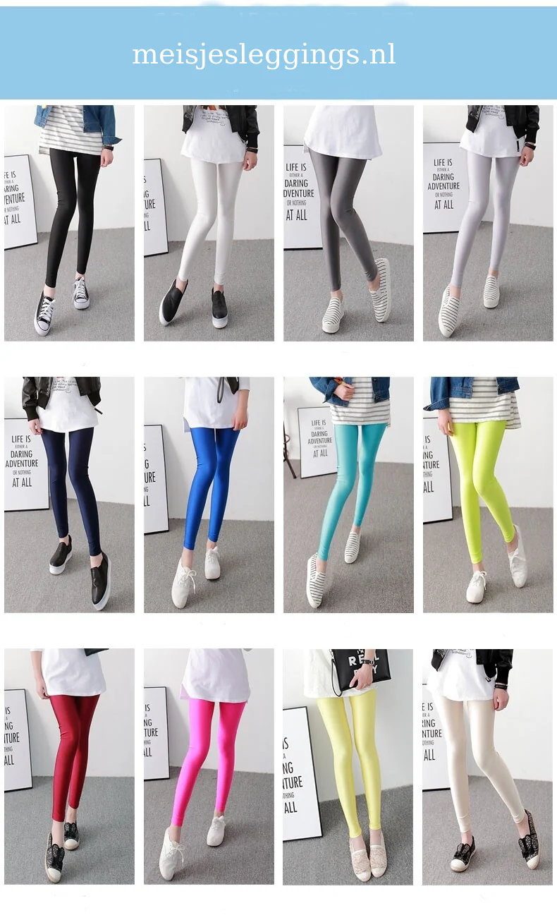 Mooie glans legging van soepele, elastische stof. Verkrijgbaar in 17 geweldige kleuren.