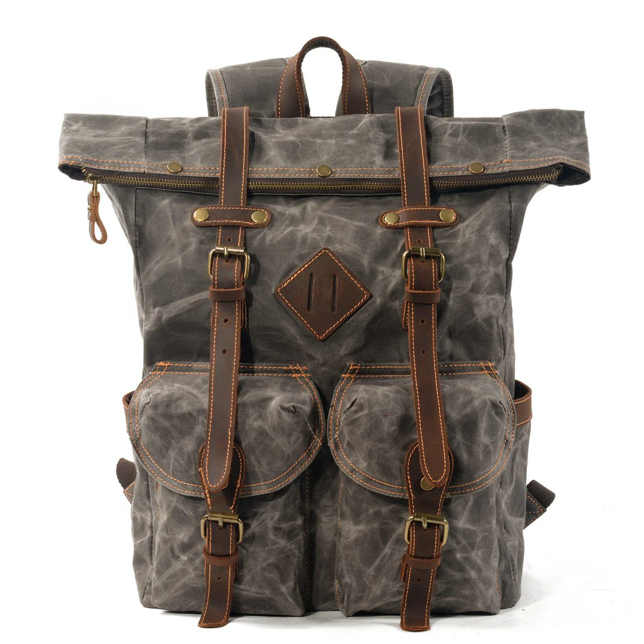 Hoofdmateriaal: geweven gewaxt katoenen canvas & Crazy Horse leer (olie geïmpregneerd volnerf leer)