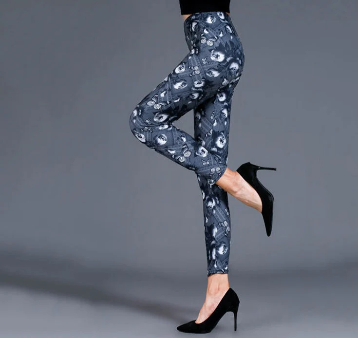 Jeanslook legging van soepele, rekbare stof met een print van bloemen en vlinders. Heerlijk zacht en comfortabel om te dragen.
