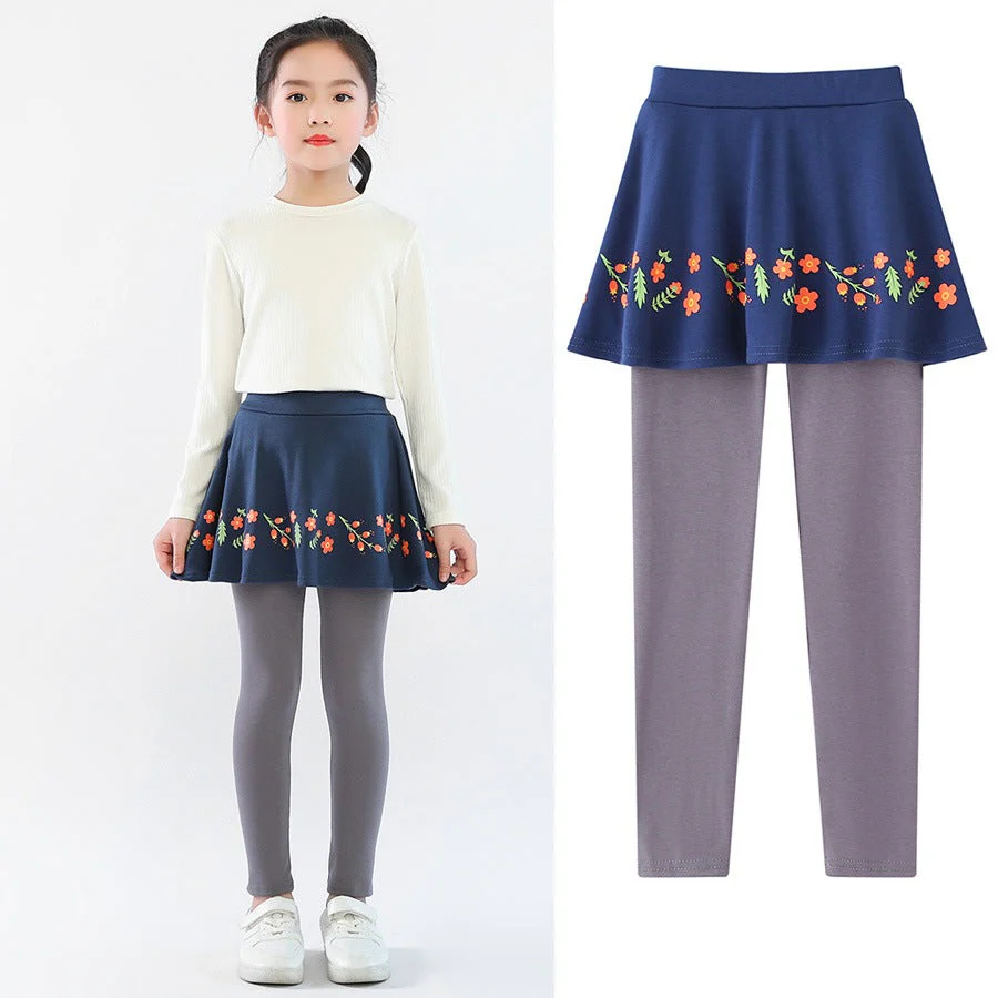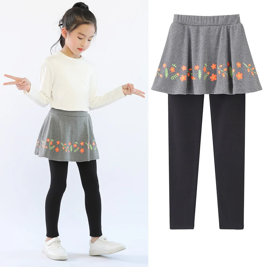 - Patroontype: Effen legging en rokje met bloemopdruk