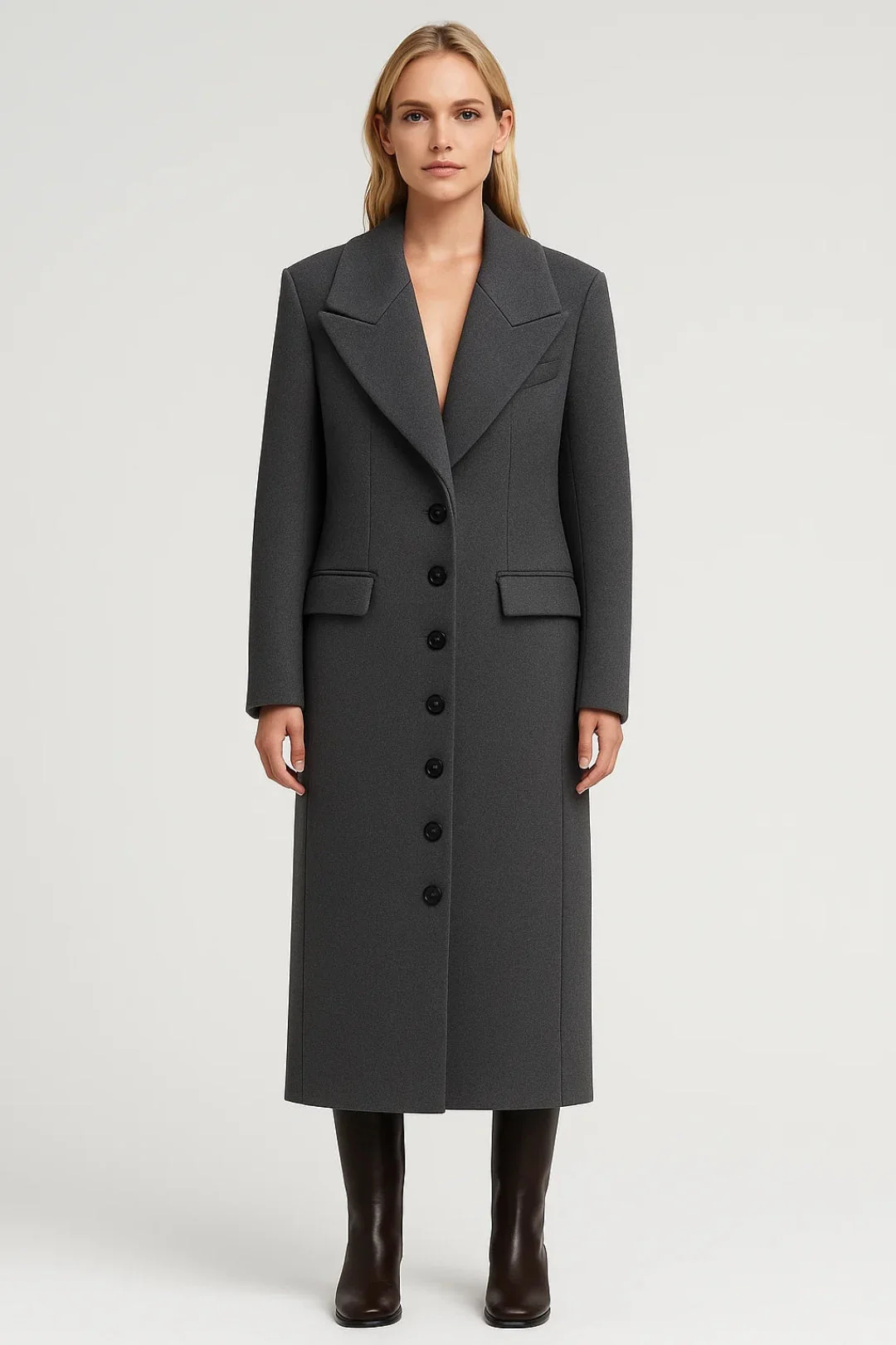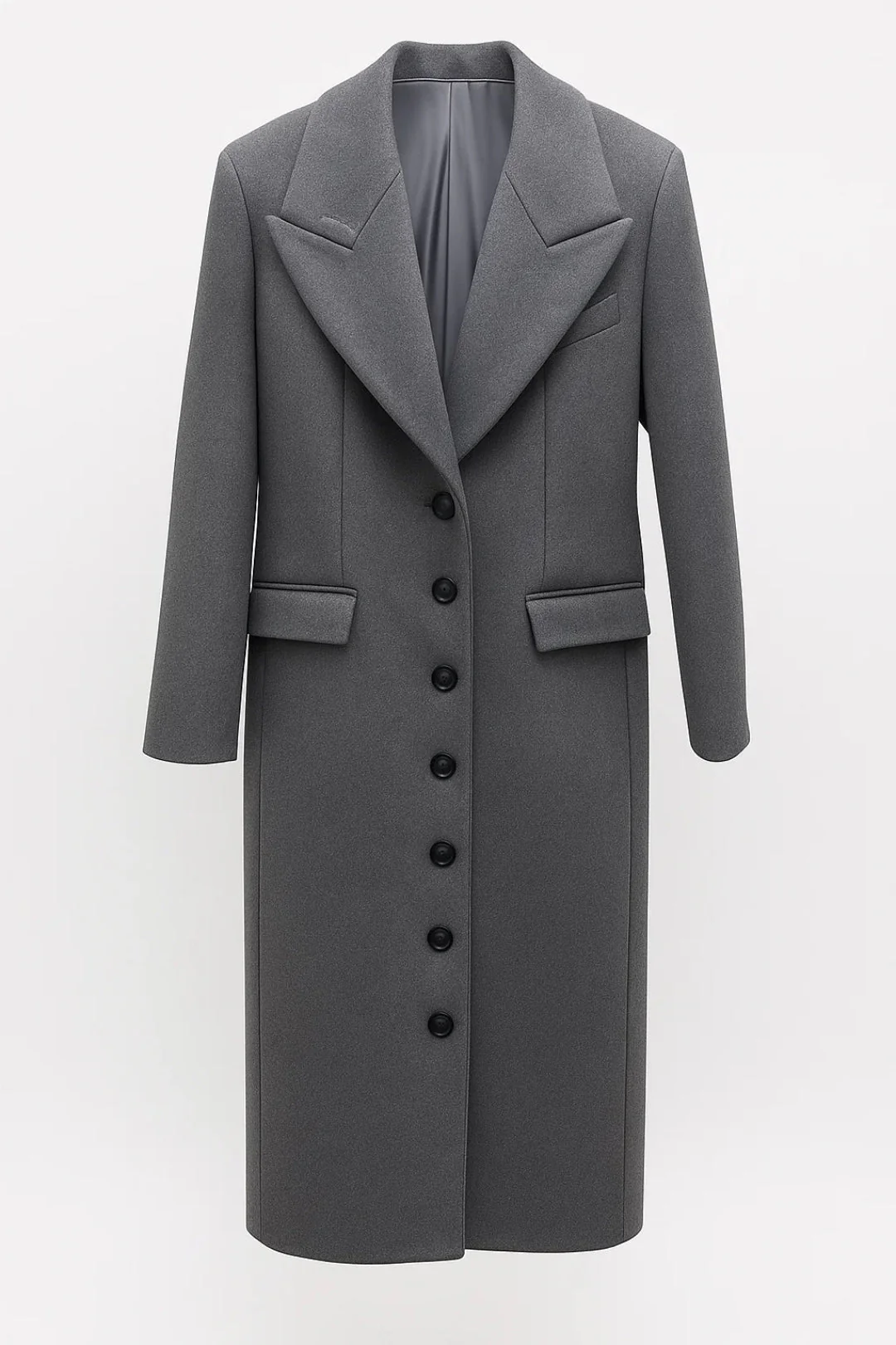 • Verfijnd ontwerp: Lange pasvorm met elegante knoopsluiting voor een slanke look.