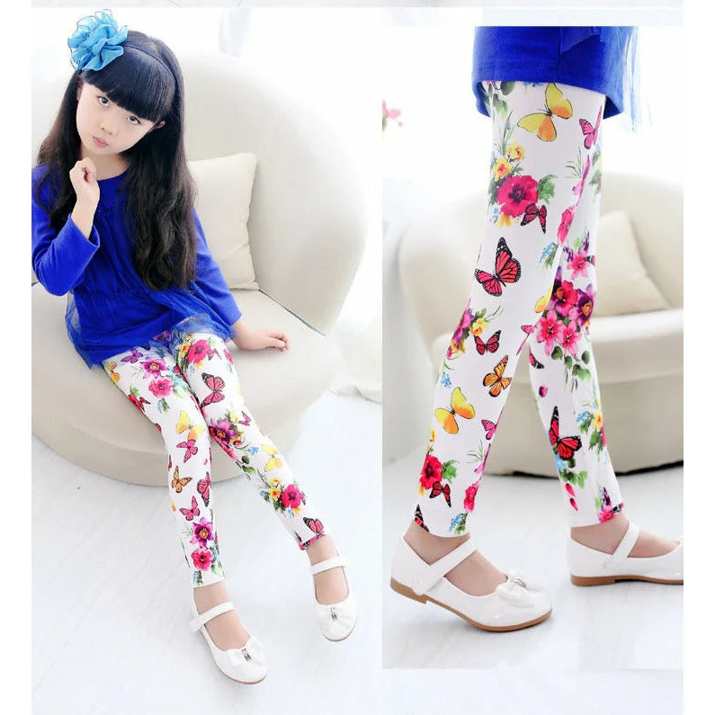 Deze vlinder print legging voor kinderen is gemaakt van zacht katoen en is perfect om te dragen in alle seizoenen. Elastische tailleband en stretch stof maken deze broek comfortabel om te dragen bij elke gelegenheid.