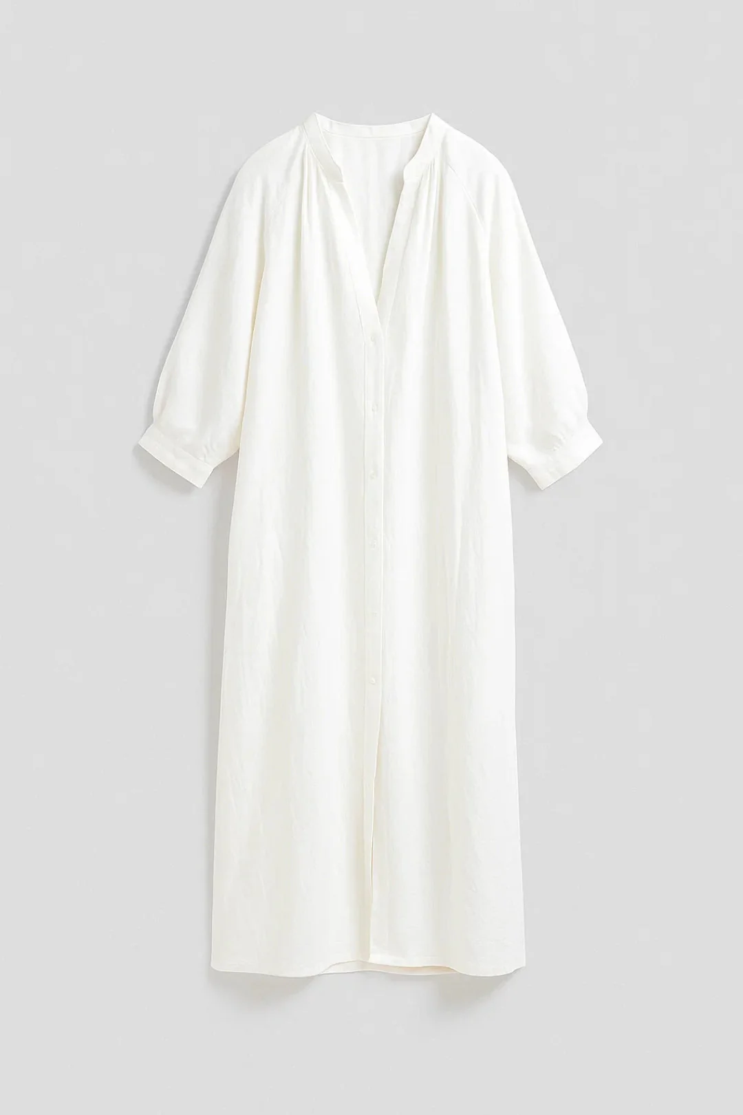 Deze maxi jurk is de ultieme zomerse vrijheid in één stuk, moeiteloos en onweerstaanbaar relaxed. De oversized hemdstijl met losse pasvorm en driekwart mouwen draag je zowel over je zwemkleding op het strand als op blote voeten door de stad. Luchtig, vrij en effortlessly chic, precies zoals zomerse mode hoort te zijn.