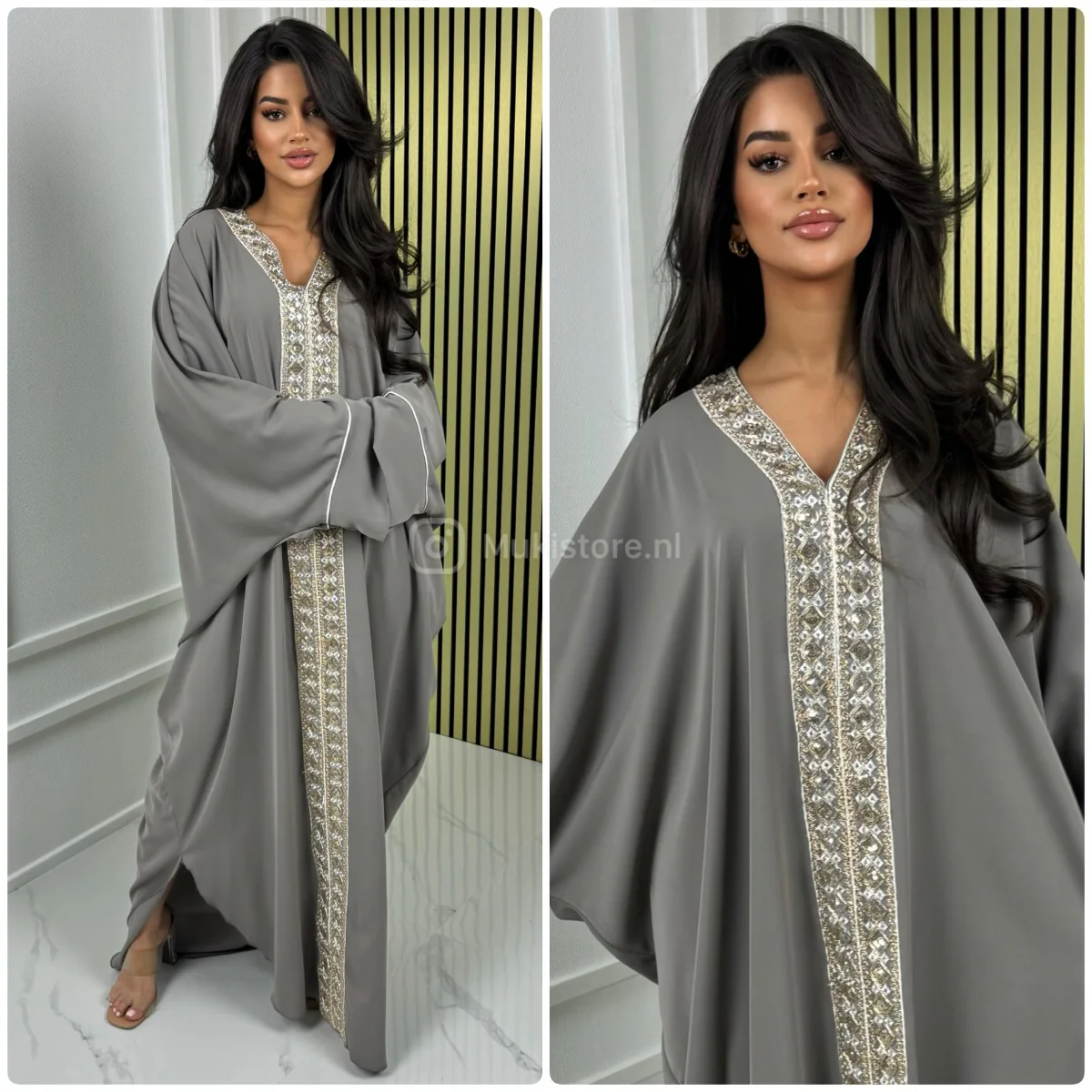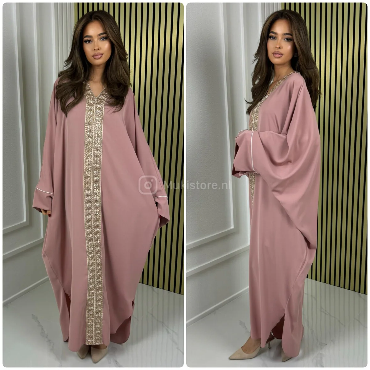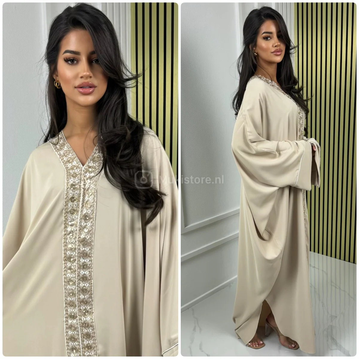 Fotomodel Imane (Bruin haar) is 1.70m lang en draagt normaliter maat XS/S.