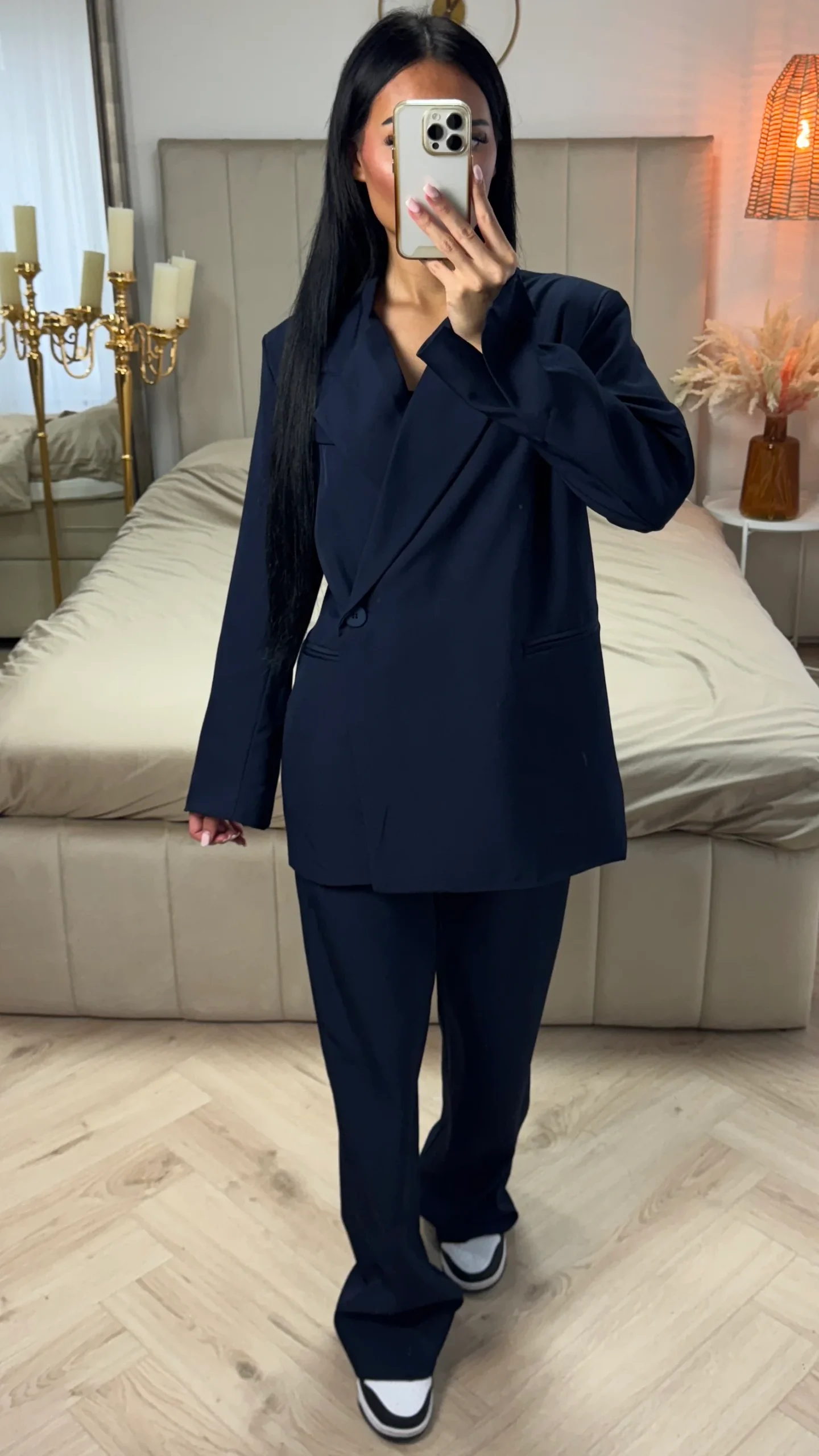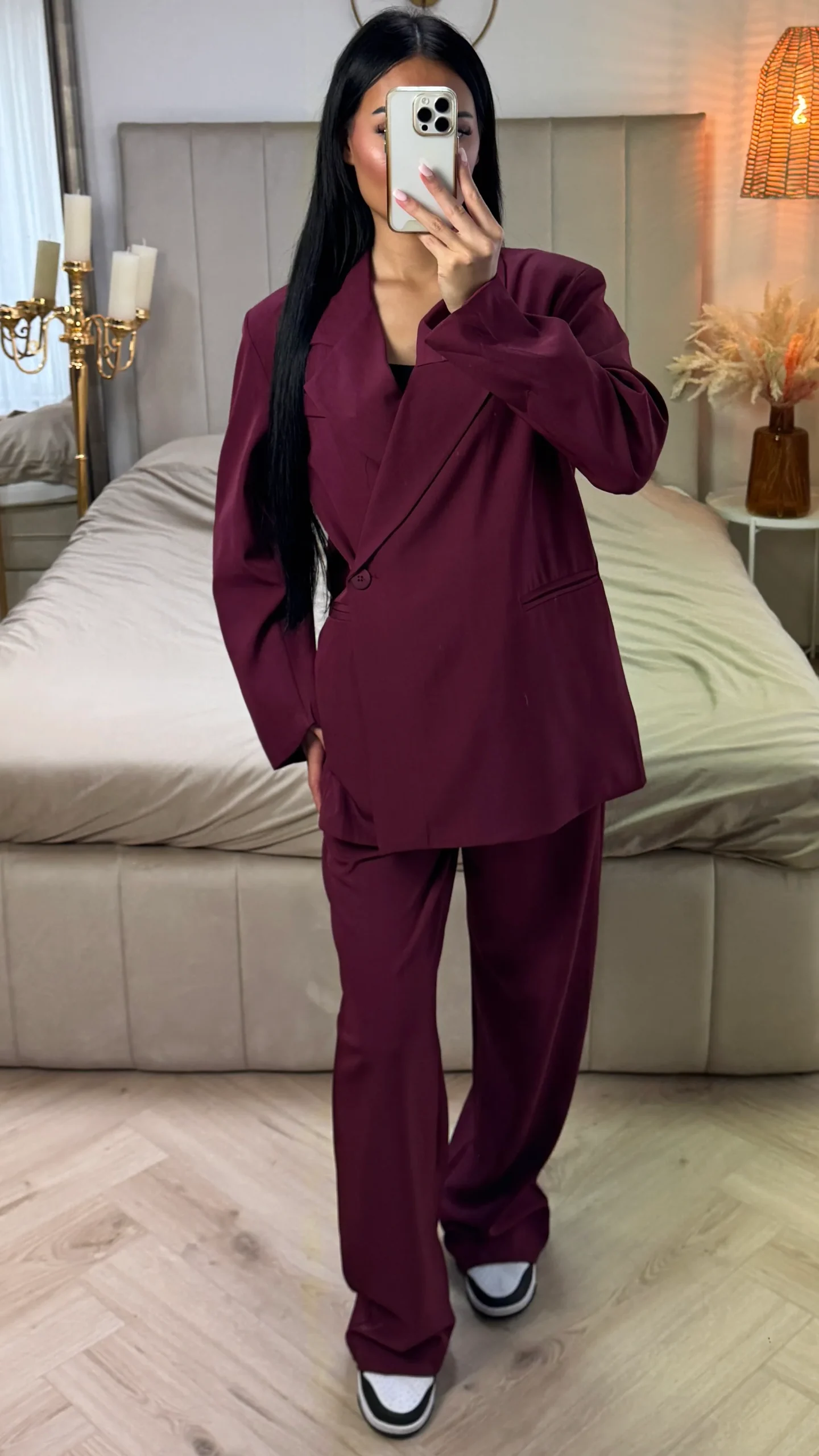 Deze oversized two-piece set is dé musthave voor een krachtige, moderne look. De lange blazer met relaxte pasvorm en bijpassende rechte broek geven je outfit direct een stijlvolle touch — of je nu kiest voor casual met sneakers of chic met hakken. De blazer is gevoerd voor extra draagcomfort en een luxe uitstraling. Perfect voor zowel zakelijke looks als een modieus avondje uit.