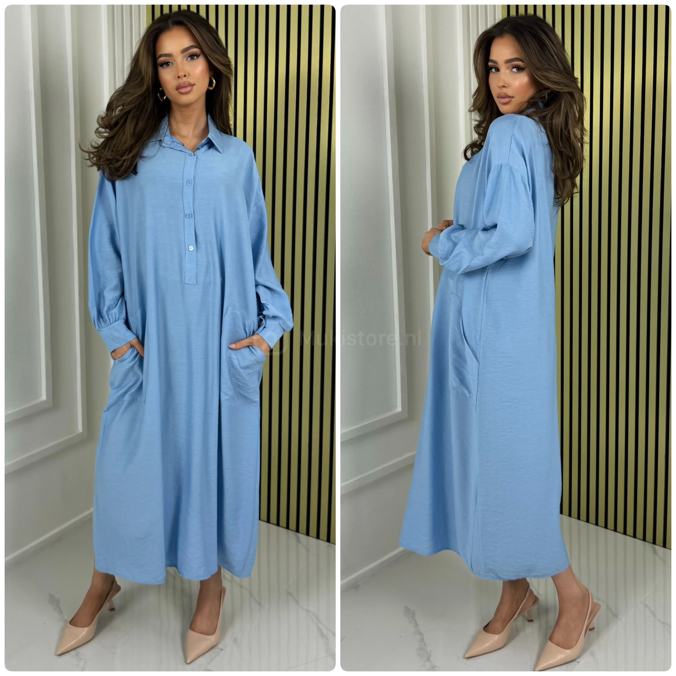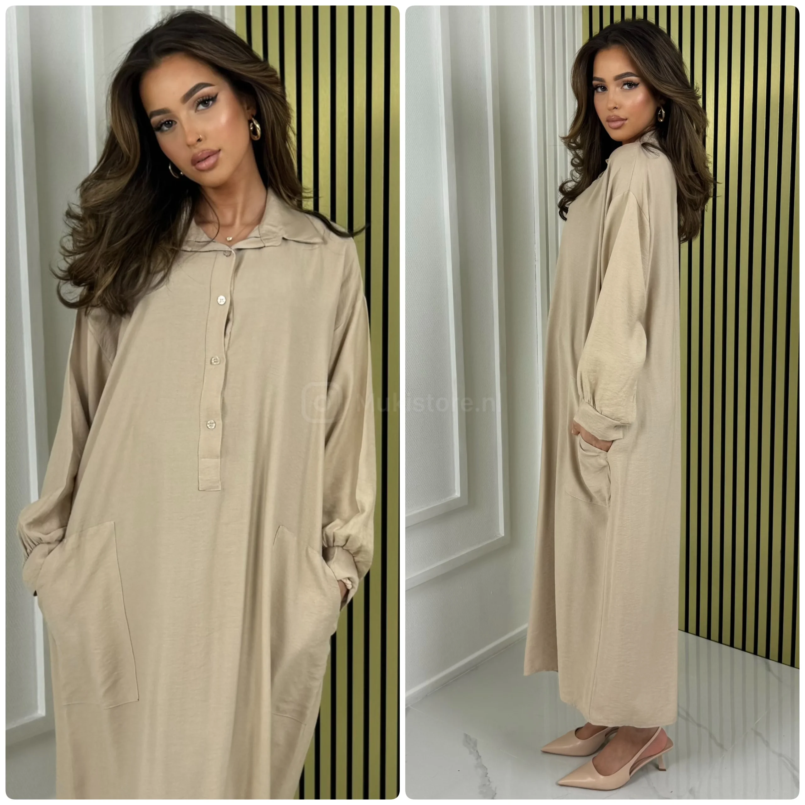 Fotomodel Imane (Bruin haar) is 1.70m lang en draagt normaliter maat XS/S.