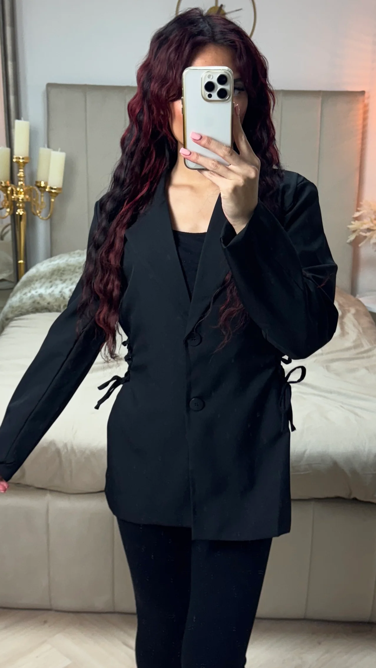 Selfiemodel is 1.72m lang en draagt normaliter maat S.