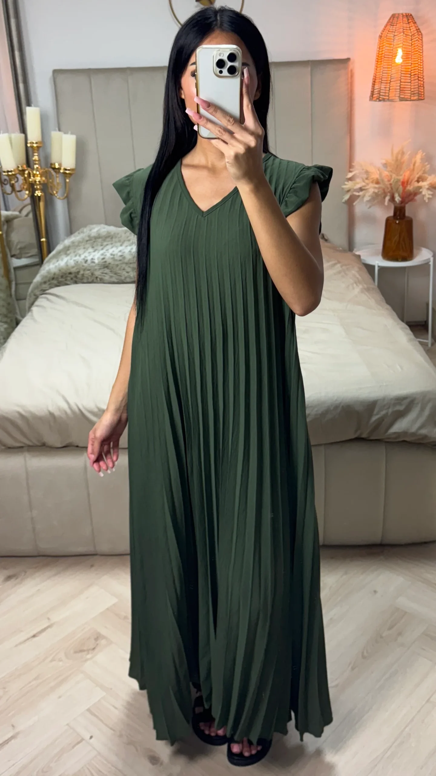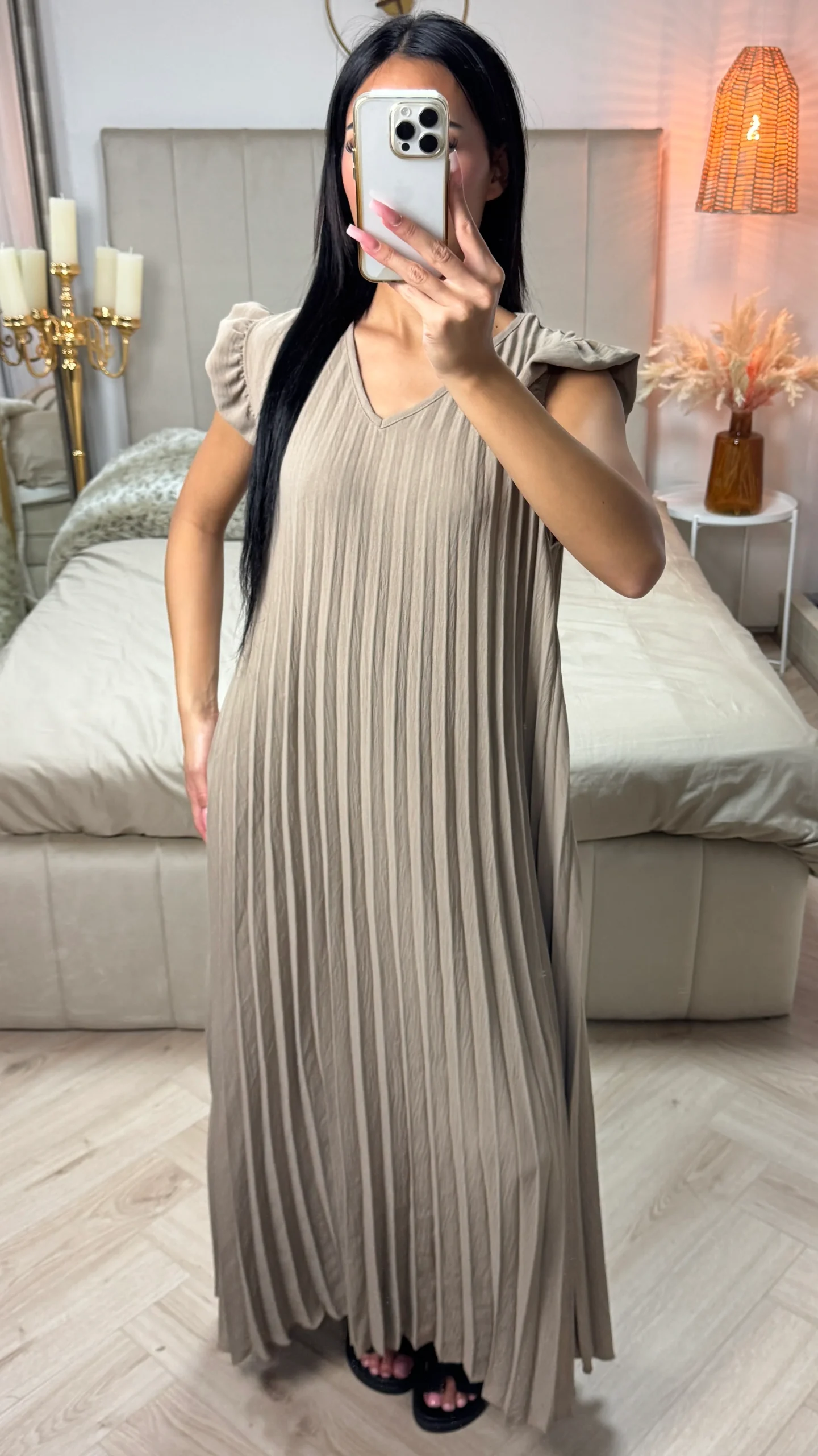 ✔ One-piece plissé maxi jurk