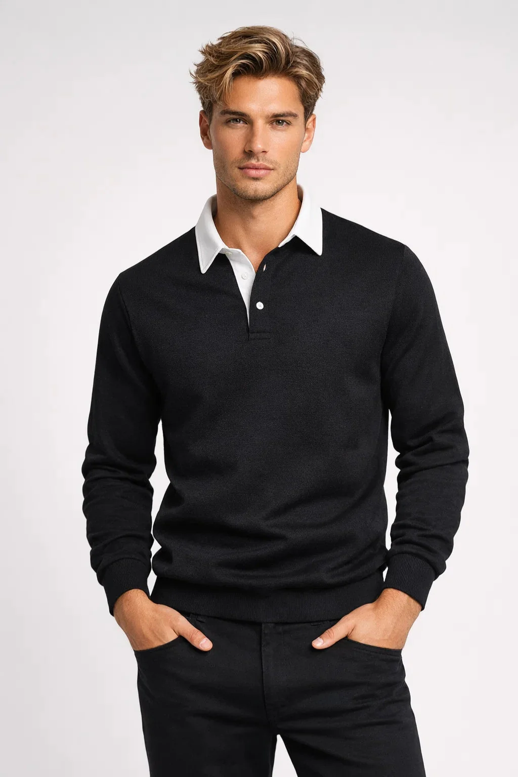 Deze klassieke heren polo is een stijlvolle keuze voor dagelijks gebruik en nette casual momenten. De lange mouwen en de kraag met knoopsluiting geven het geheel een verzorgde uitstraling die moeiteloos past binnen zowel een informele als zakelijke setting. Ideaal voor werk, afspraken of een ontspannen dag buitenshuis.