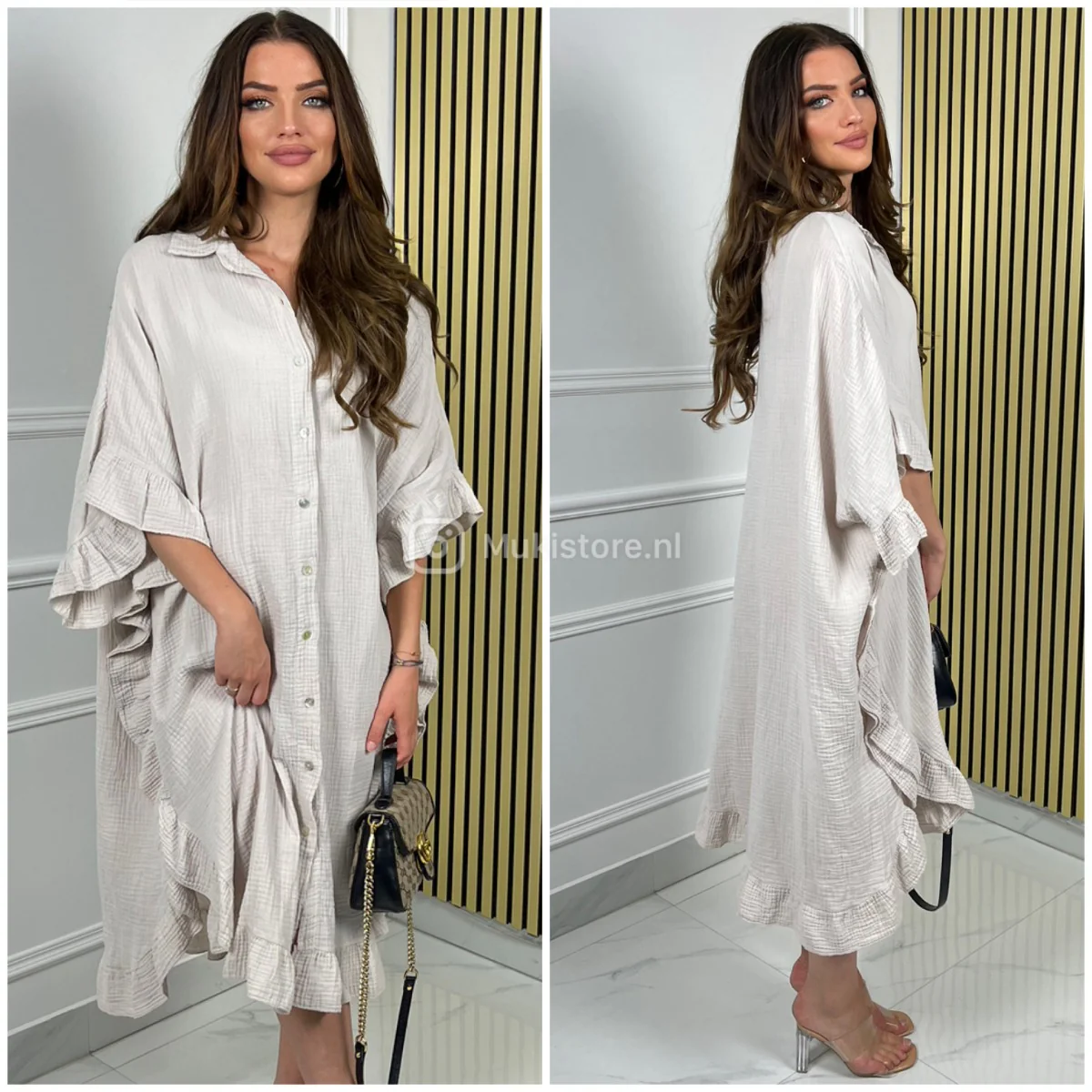 Fotomodel is 1.68m lang en draagt normaliter maat S.