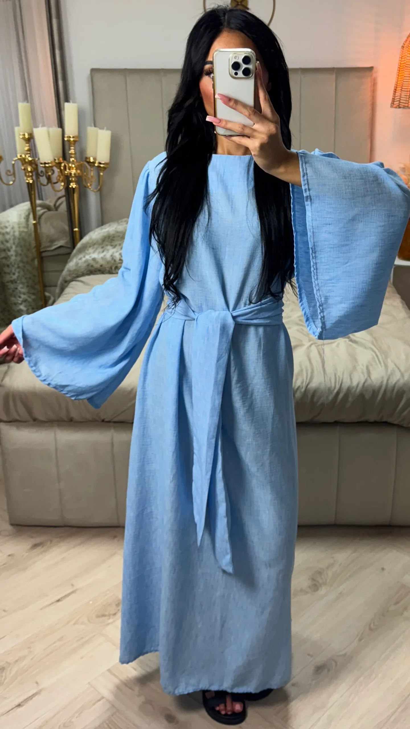 Selfiemodel is 1.72m lang en draagt normaliter maat S.