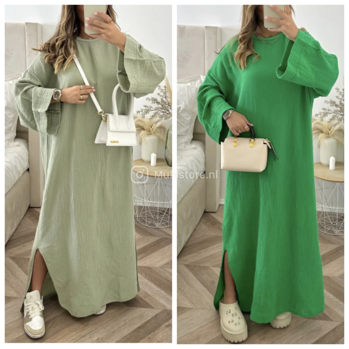 | Kleur | Armygroen, Beige, Camel, Donkergrijs, Donkerpaars, Fuchsia, Groen, Guccigreen, Koningsblauw, Licht blauw, Licht roze, Lila, Mintgroen, Oranje, Zwart |