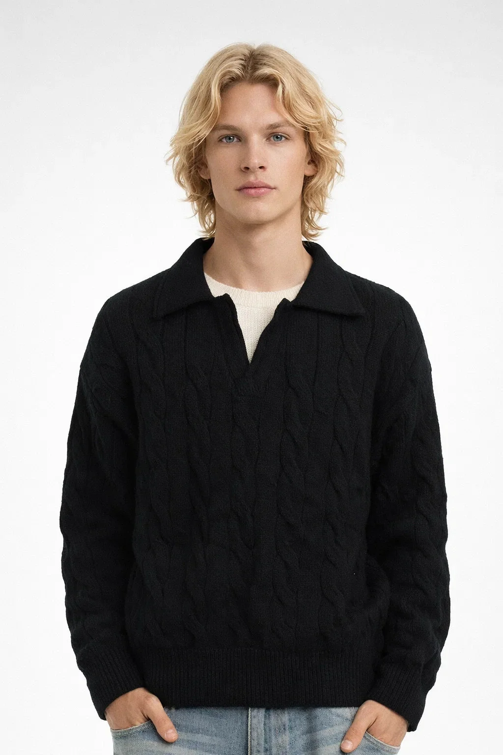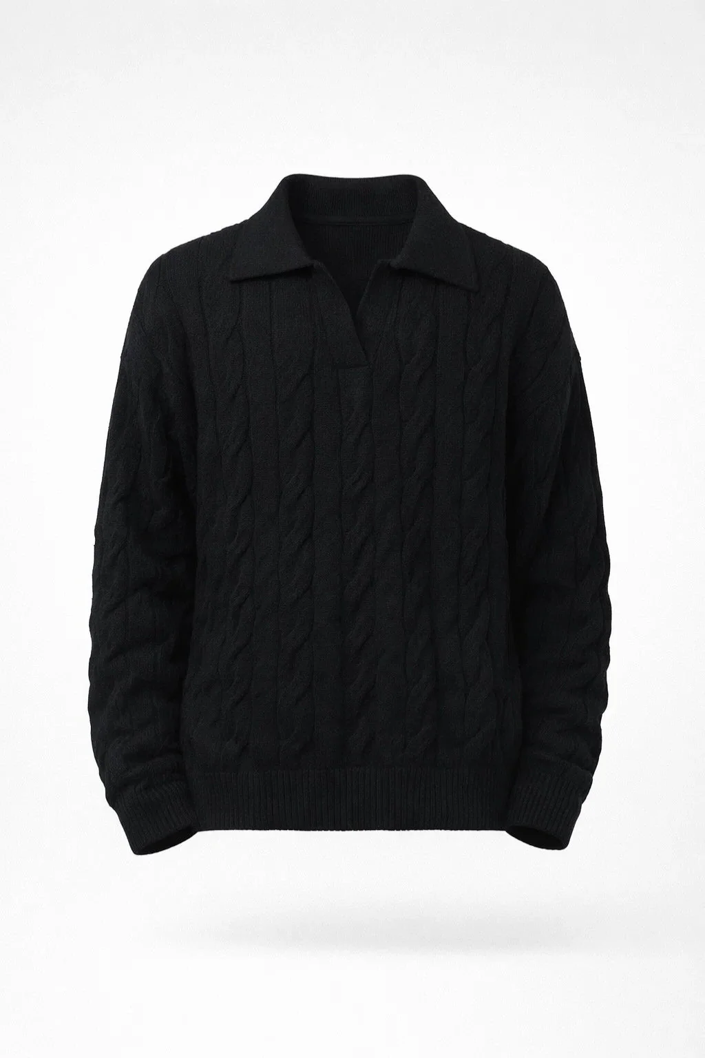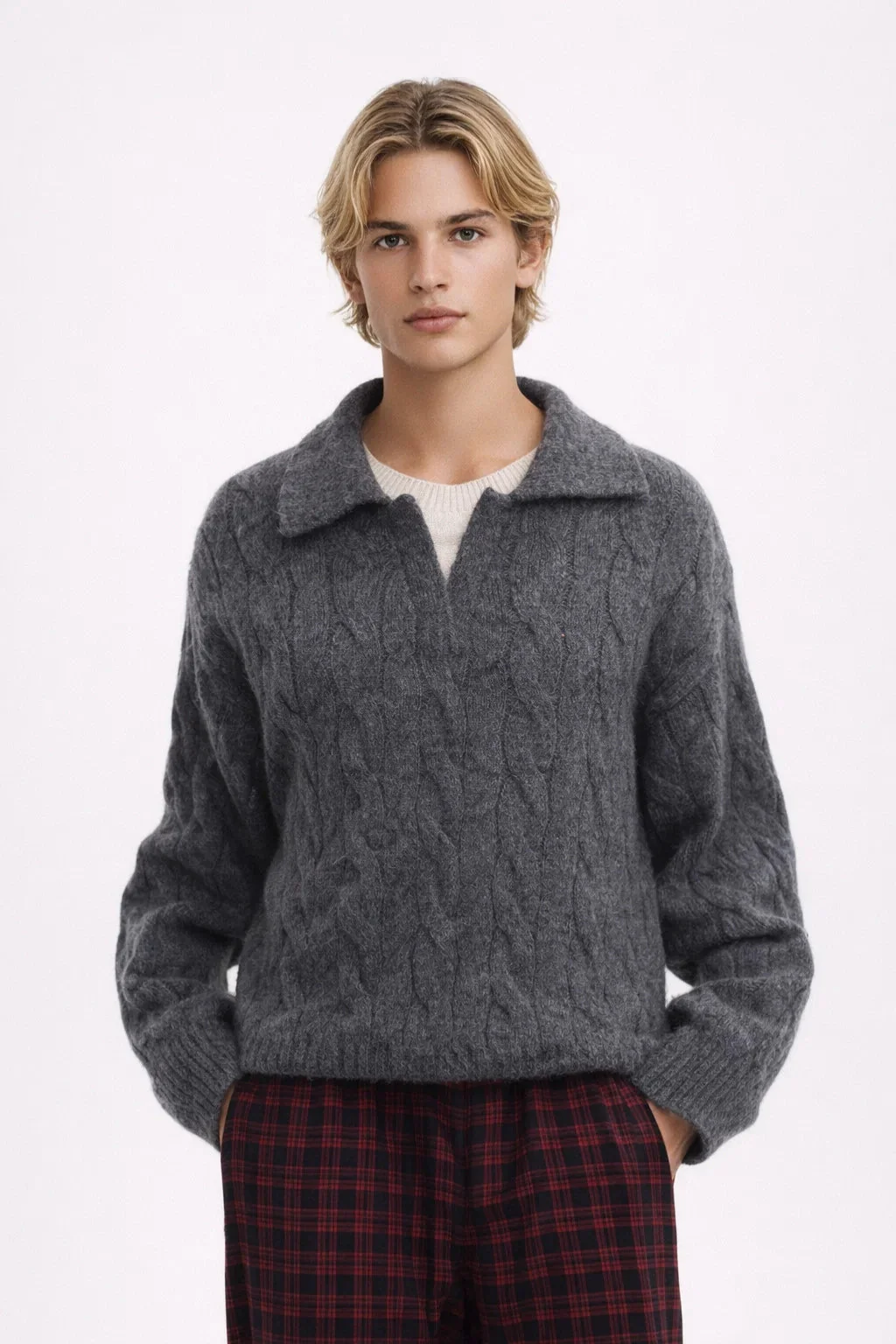 De trui heeft een kraag met open hals en een subtiele structuur aan de voorzijde, wat zorgt voor een verzorgde en eigentijdse uitstraling. De lange mouwen en rechte pasvorm maken dit model geschikt voor dagelijks gebruik, zowel casual als iets netter gestyled.