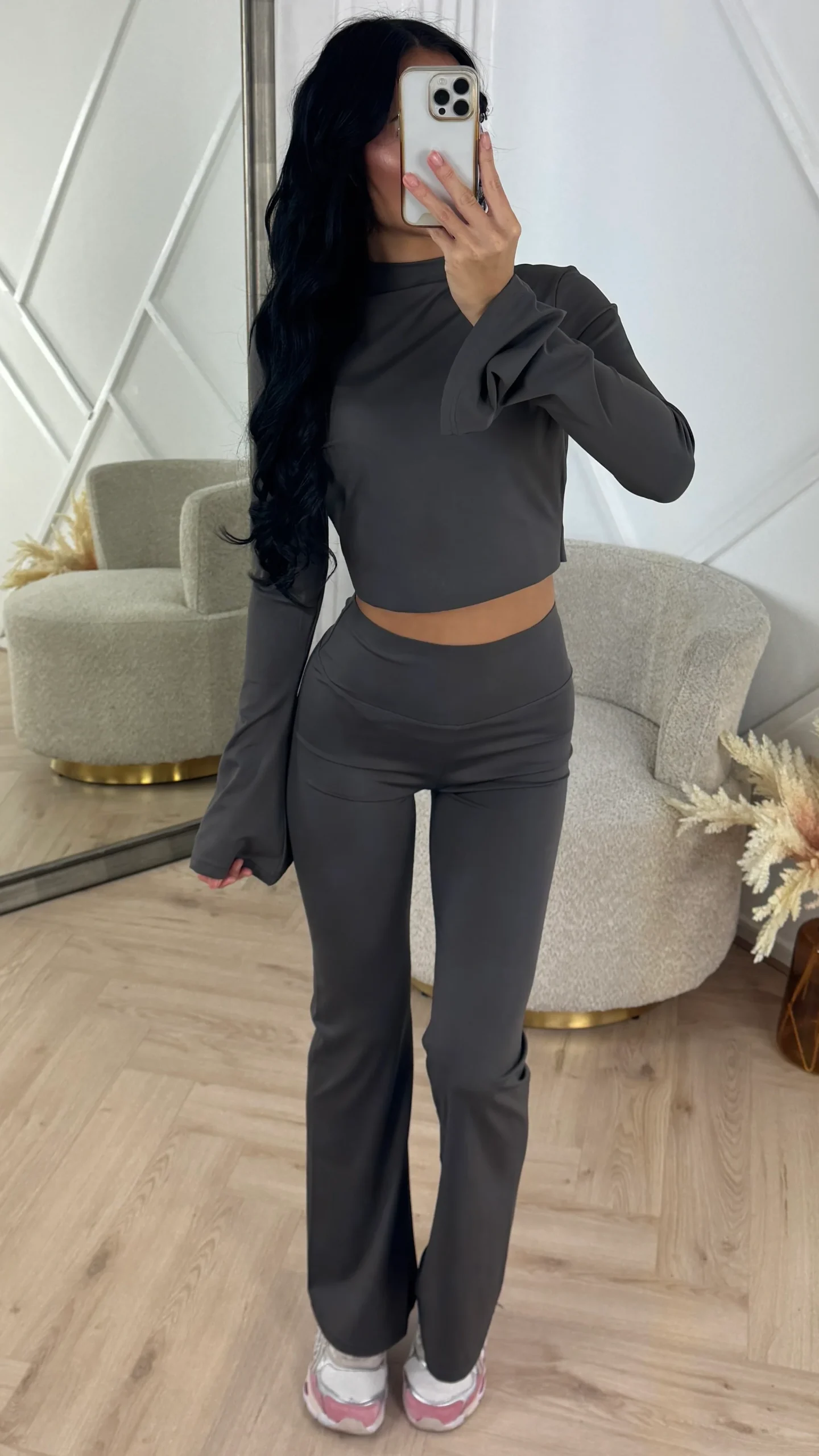 🔖 Two-Piece Stretch Set met Flared Broek & Hoge Hals
