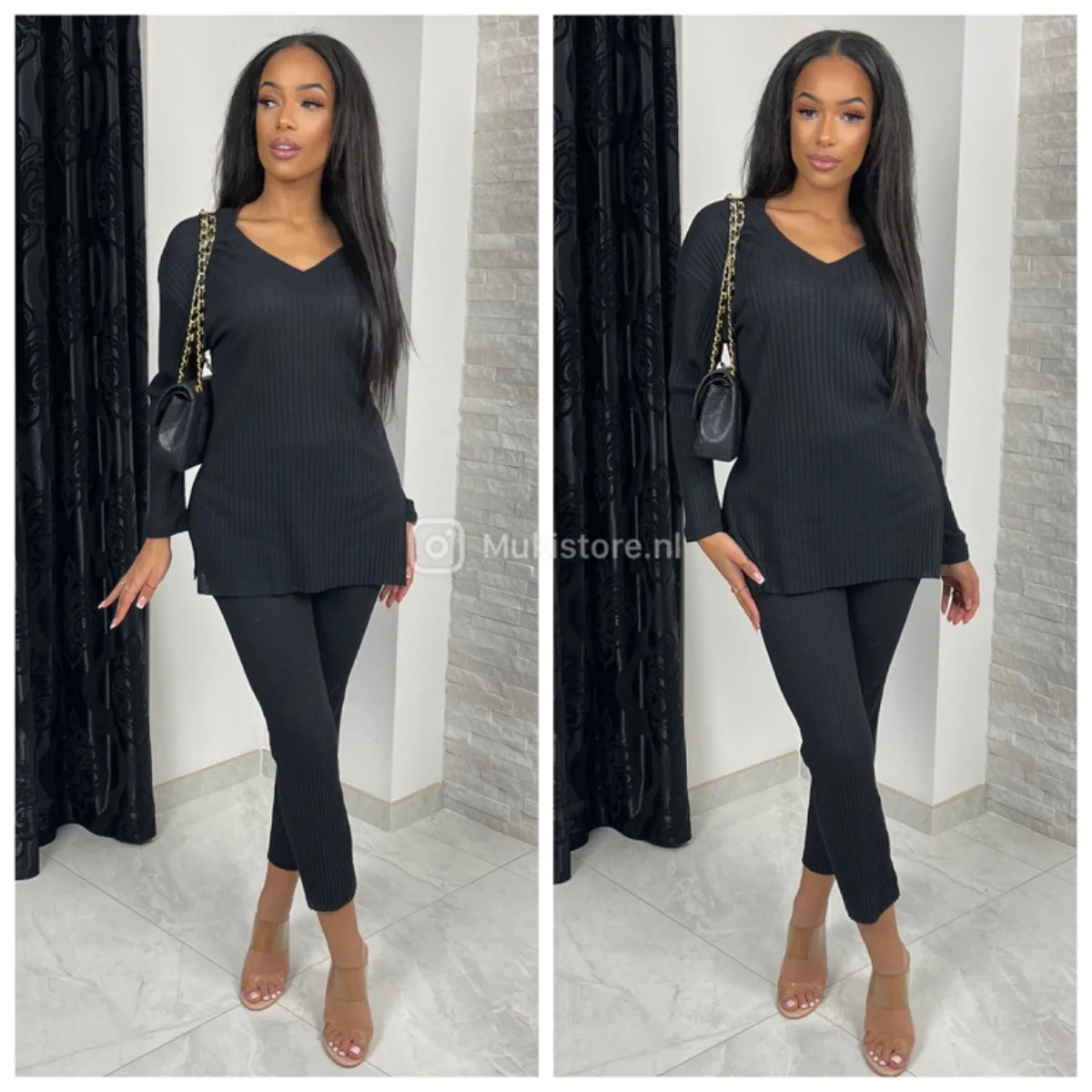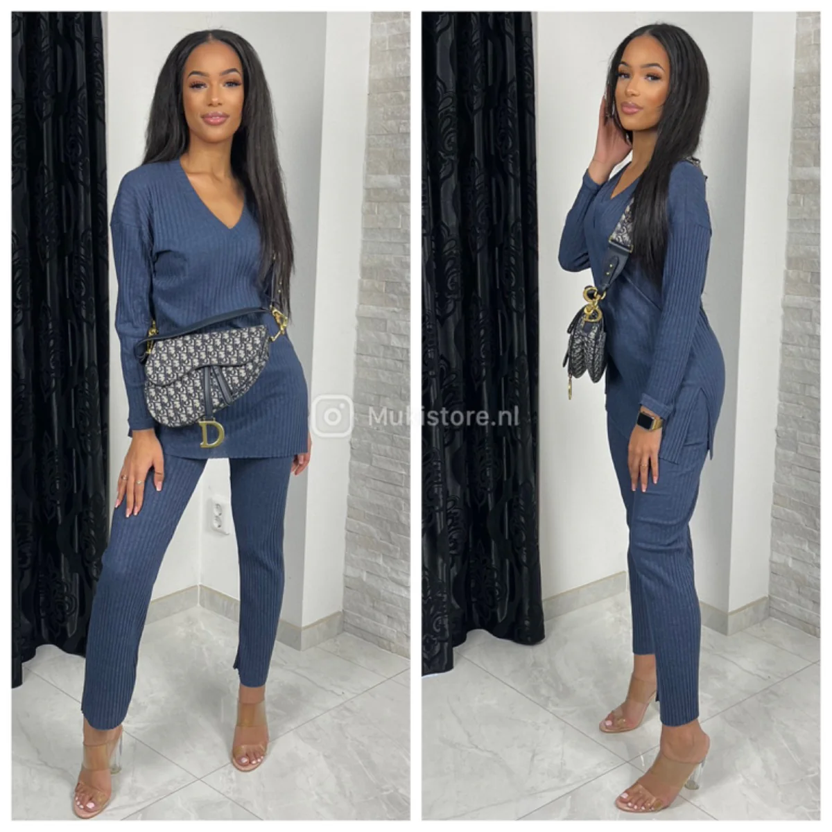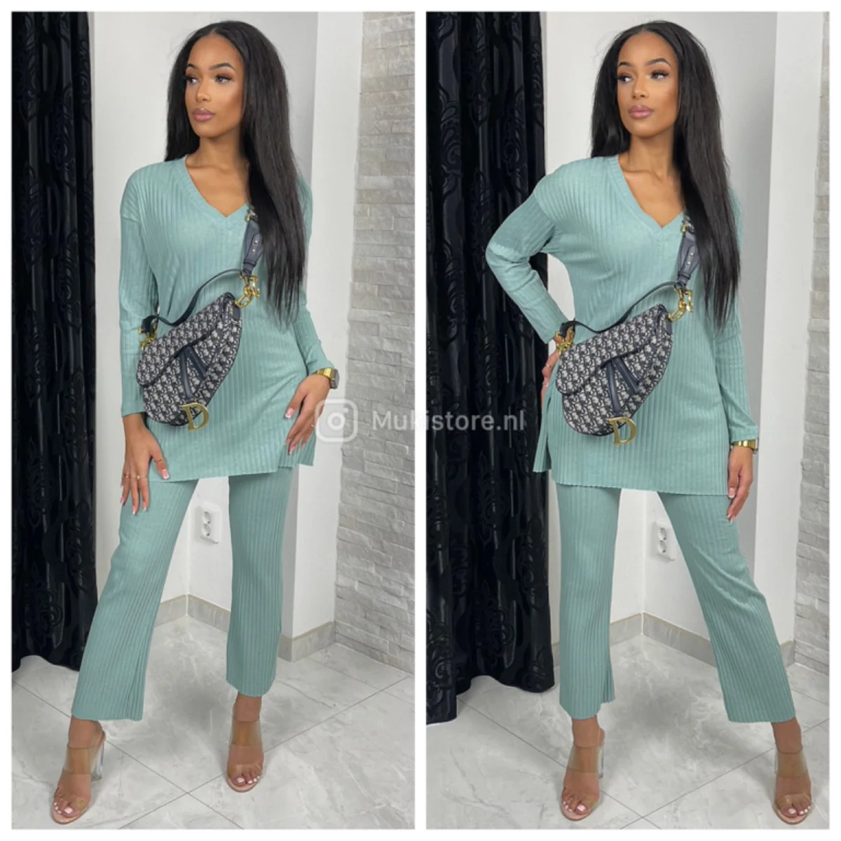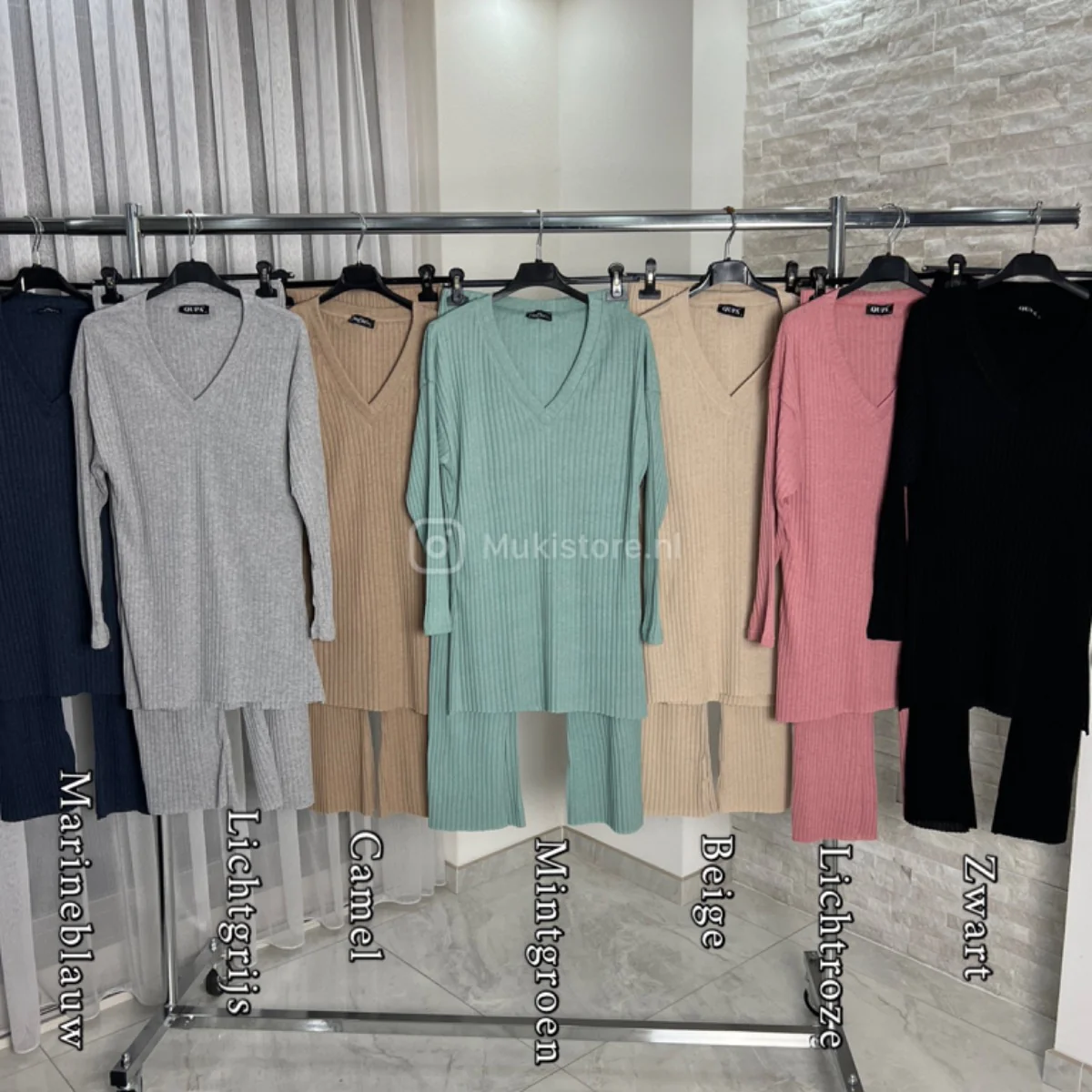 Heerlijk setje gemaakt van dun ribbeltjes materiaal.